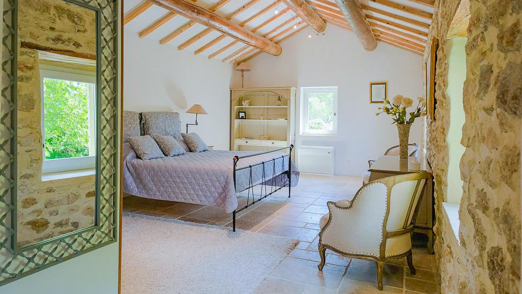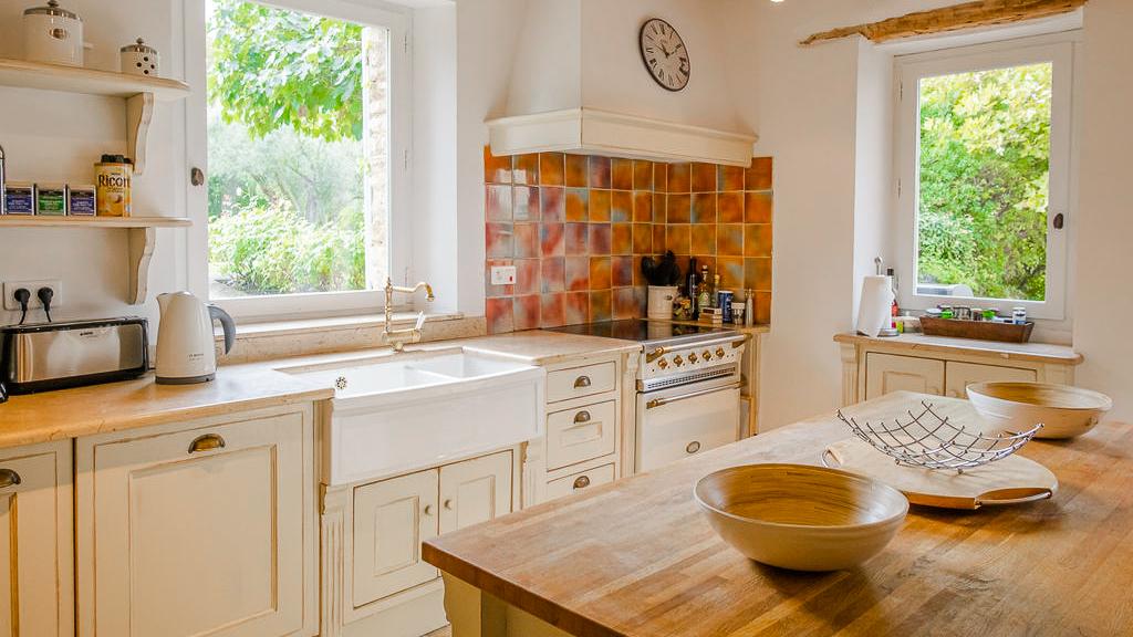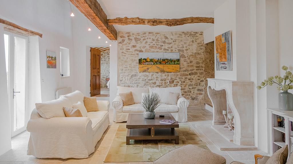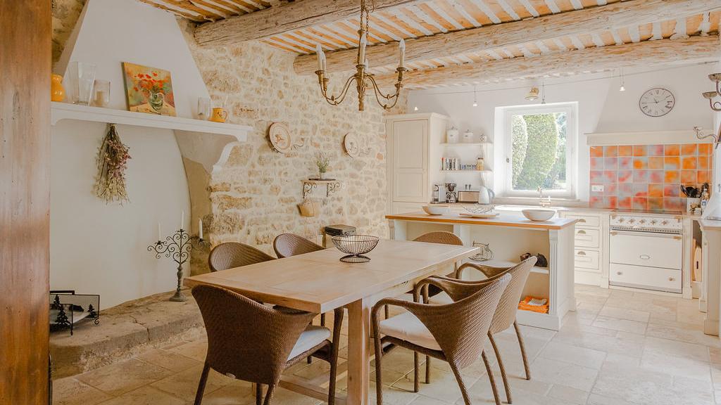 Across the house, the soft, natural palette, traditional materials, and thoughtful details create a genuine home-away-from-home feeling that previous guests have loved. A pellet stove warms the house as soon as the temperatures start to drop, adding a cosy touch to cooler Provençal evenings.