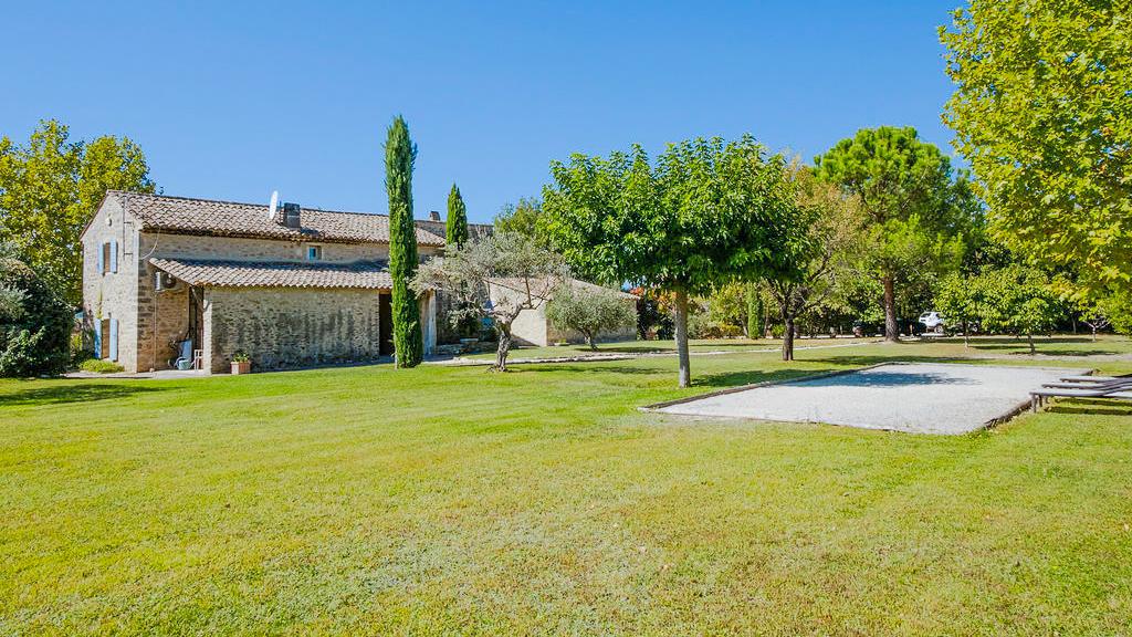 The heated private pool, framed by olive trees, offers the perfect spot to cool off on a sun lounger. Guests can enjoy a game on the boules court, gather around the outdoor barbecue, or simply unwind and take in the peaceful surroundings.
