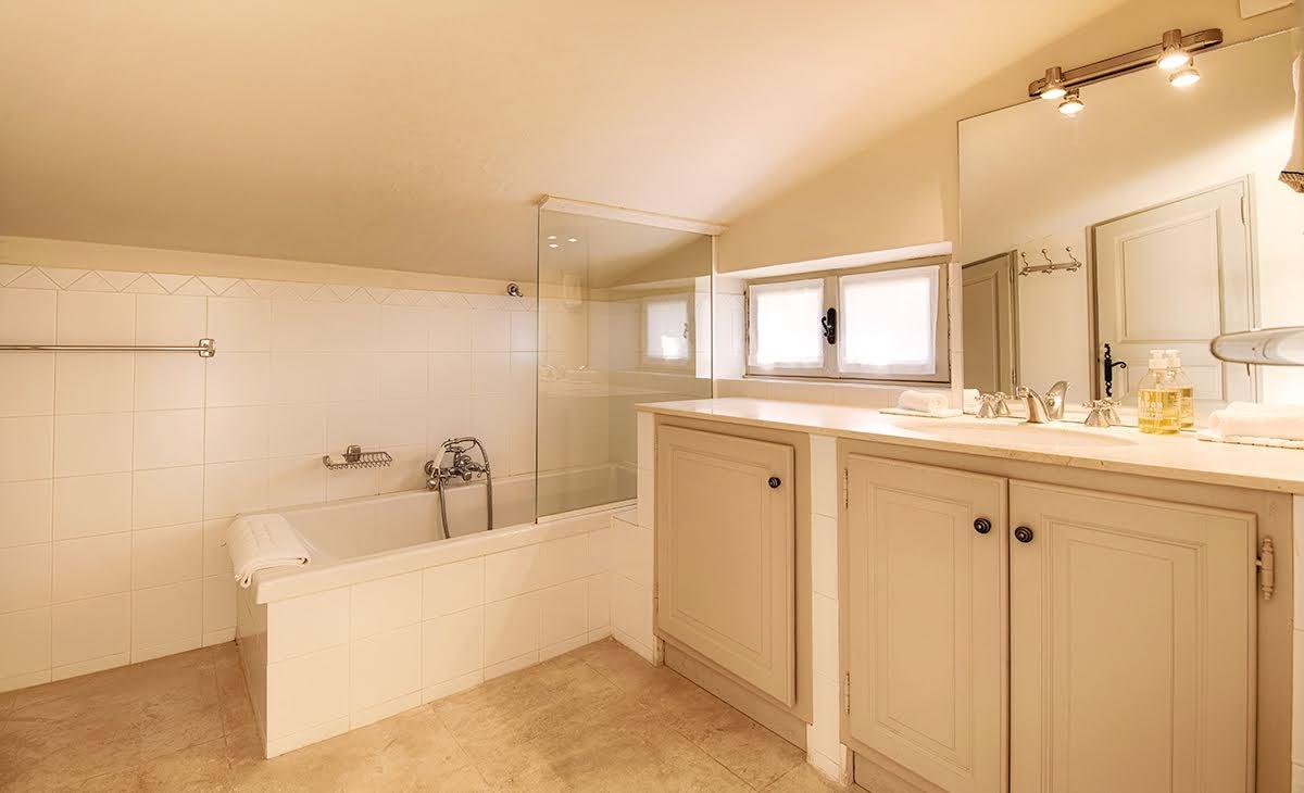 La chambre du haut comprend un lit double et un lit simple, une salle de bains avec baignoire sur pieds, un WC séparé. Elle est climatisée.