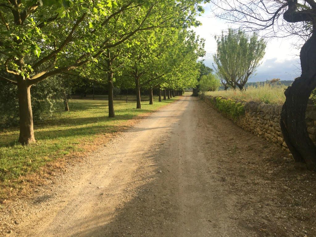 Franchissez le portail du Domaine de Fontblanche : l’allée plantée de platanes dessert d’abord le Mas sur la droite, puis un peu plus haut sur la gauche, La Bergerie.