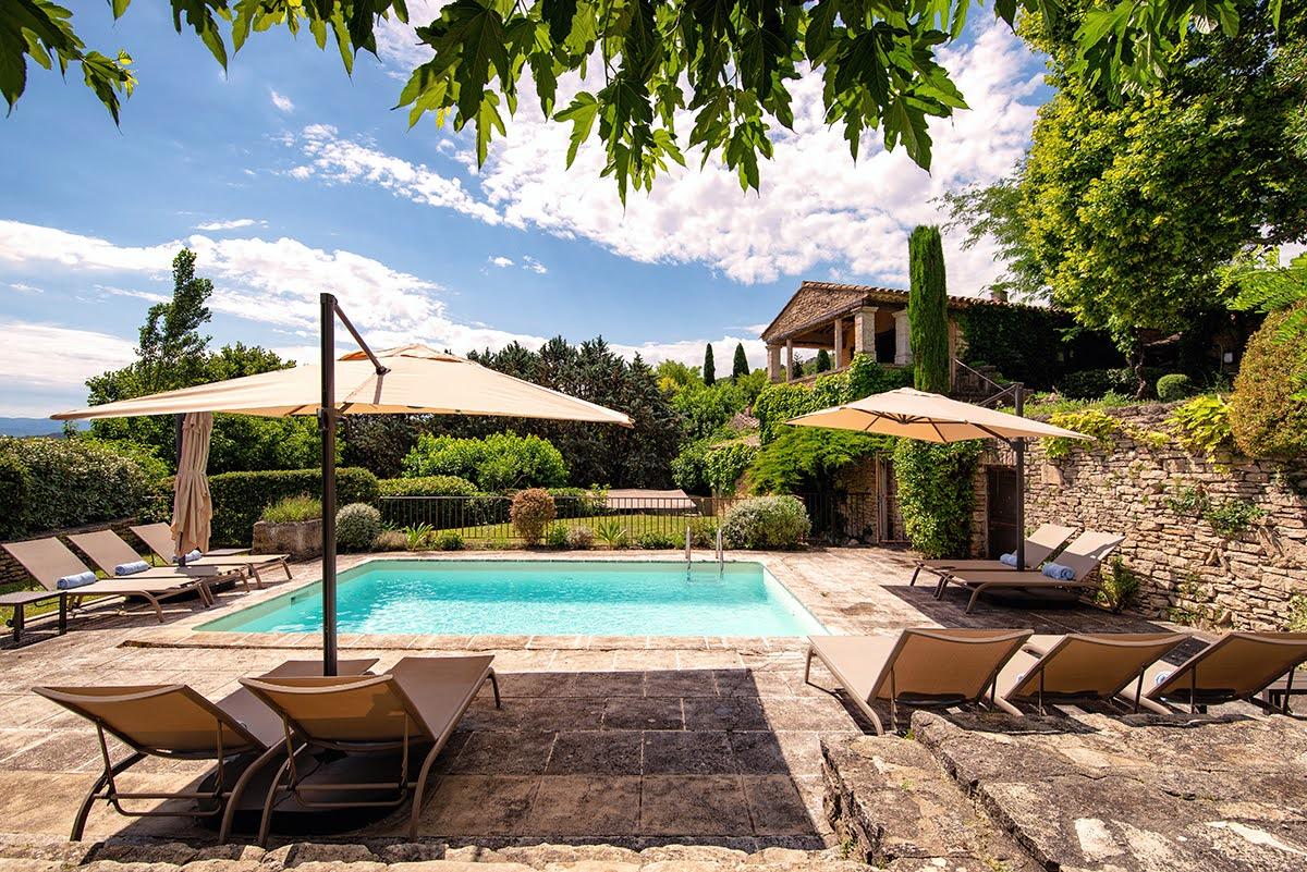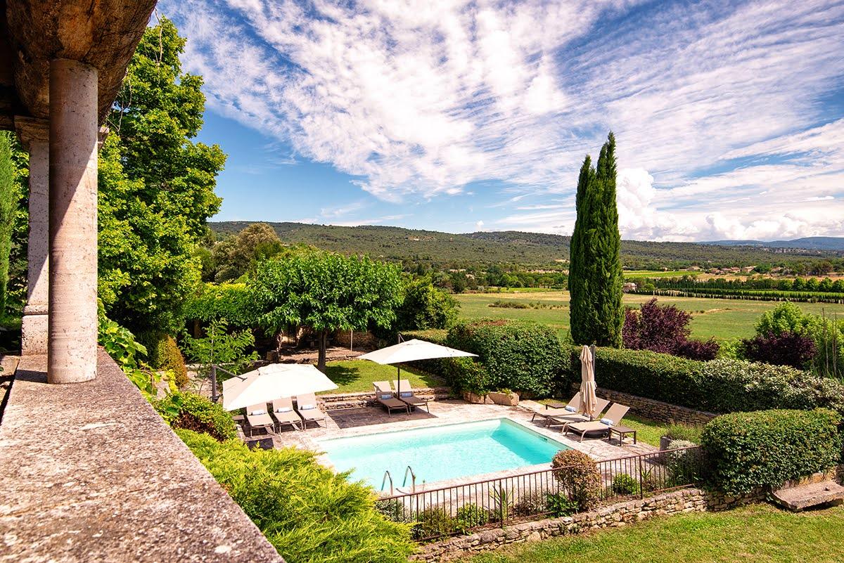 Une piscine, un court de tennis, 4 hectares de terrain entre champs d’oliviers, cerisiers et vignes. Au pied du spectaculaire village de Gordes, au cœur du triangle d’or du Luberon.