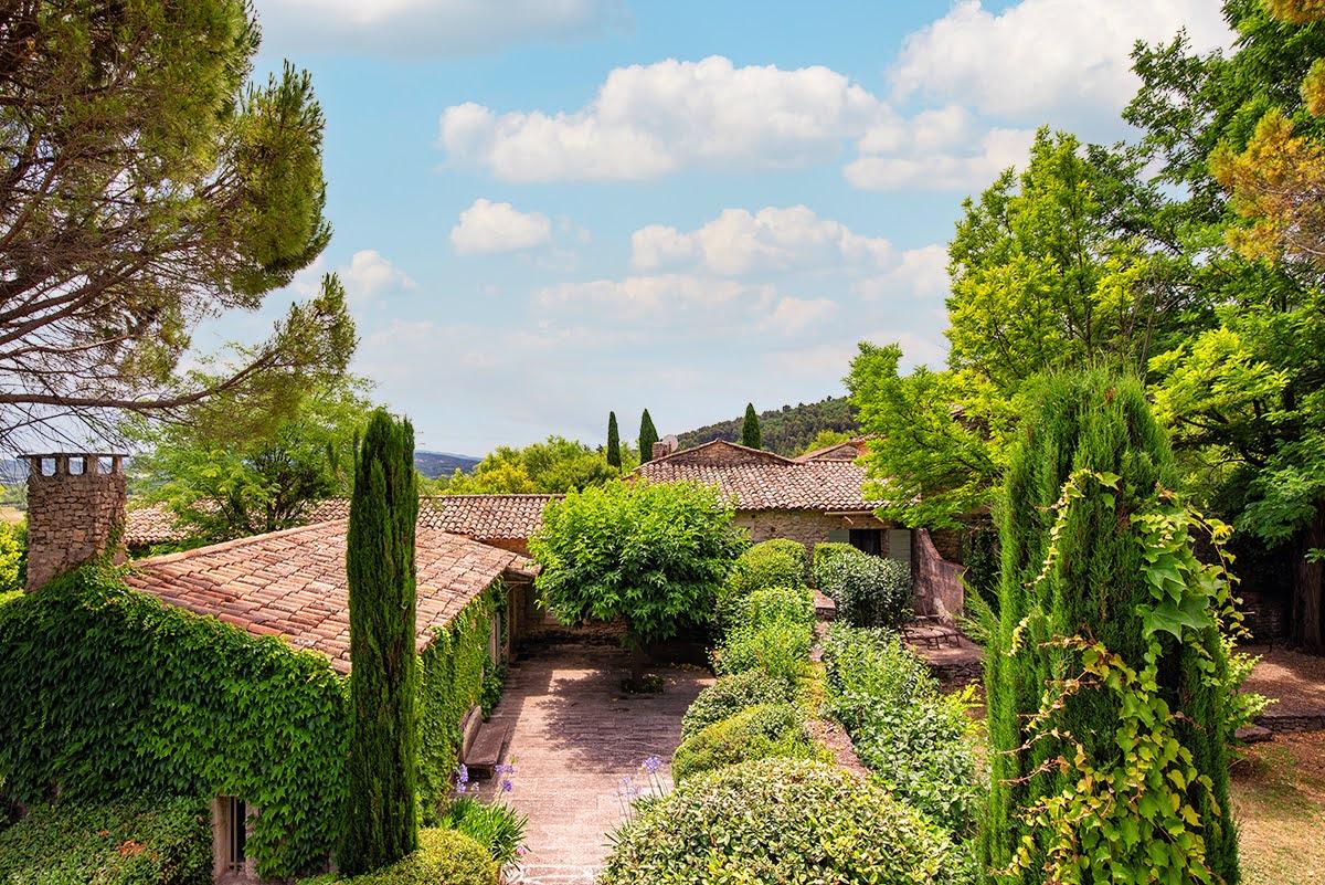 Le Mas de la Source, grande bastide du XIXème siècle avec une piscine, une cuisine d’été et 3 terrasses. Trois chambres sont réparties autour de la cour intérieure, aux airs de place du village, et deux autres dans l’autre aile de la maison.