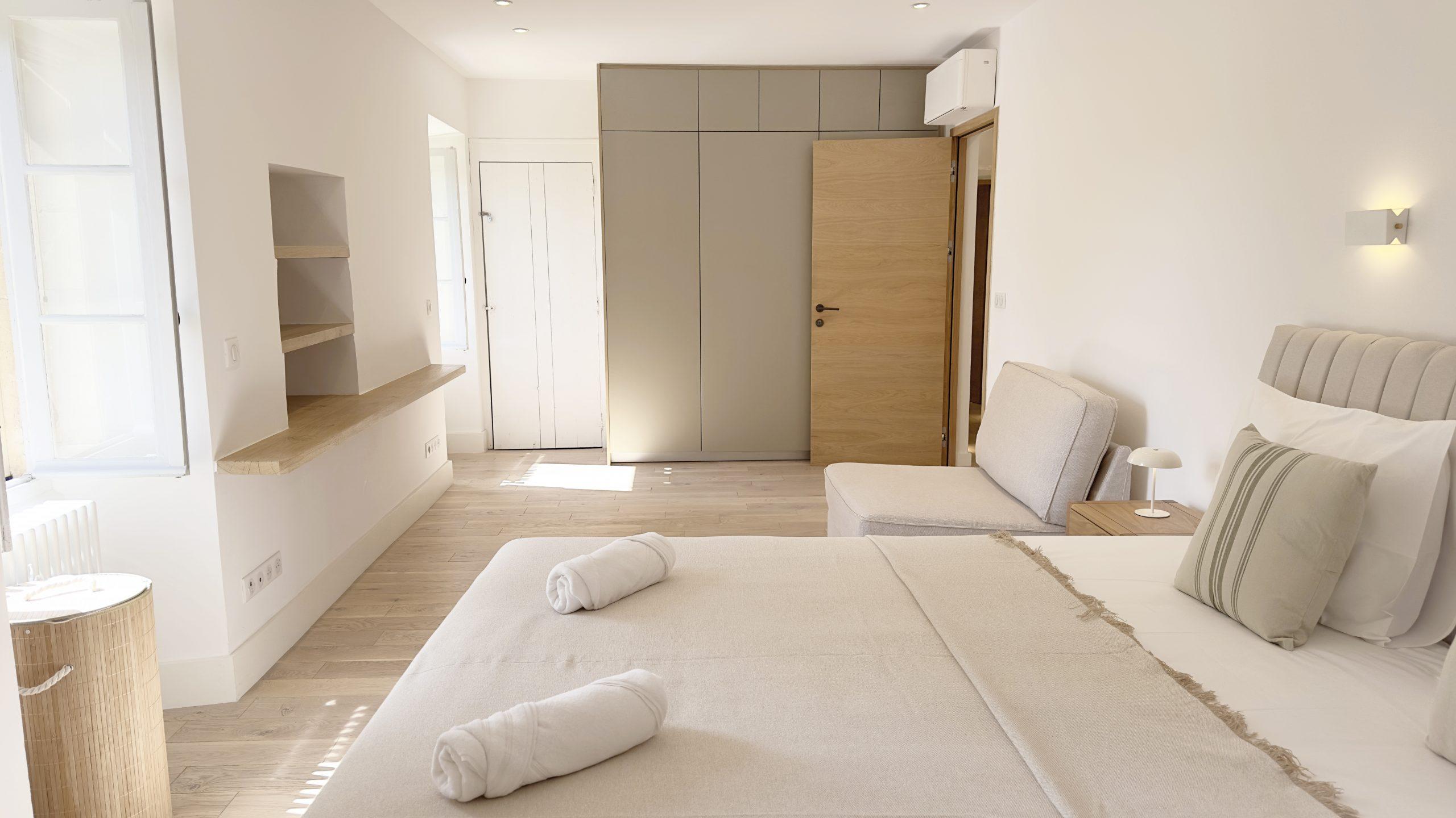 The remaining four are located in the main house, spread across the ground and upper floors, each featuring an ensuite bathroom and high-end amenities. All rooms are furnished with king-size beds (180 x 200 cm), while the sixth suite, in the separate wing, also includes a 120 cm sofa bed suitable for a child.