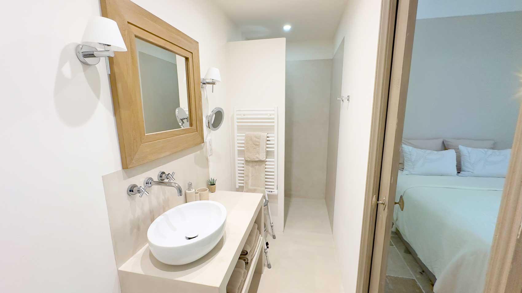Au rez-de-chaussée, une chambre double avec sa propre douche et WC offre confort et intimité.