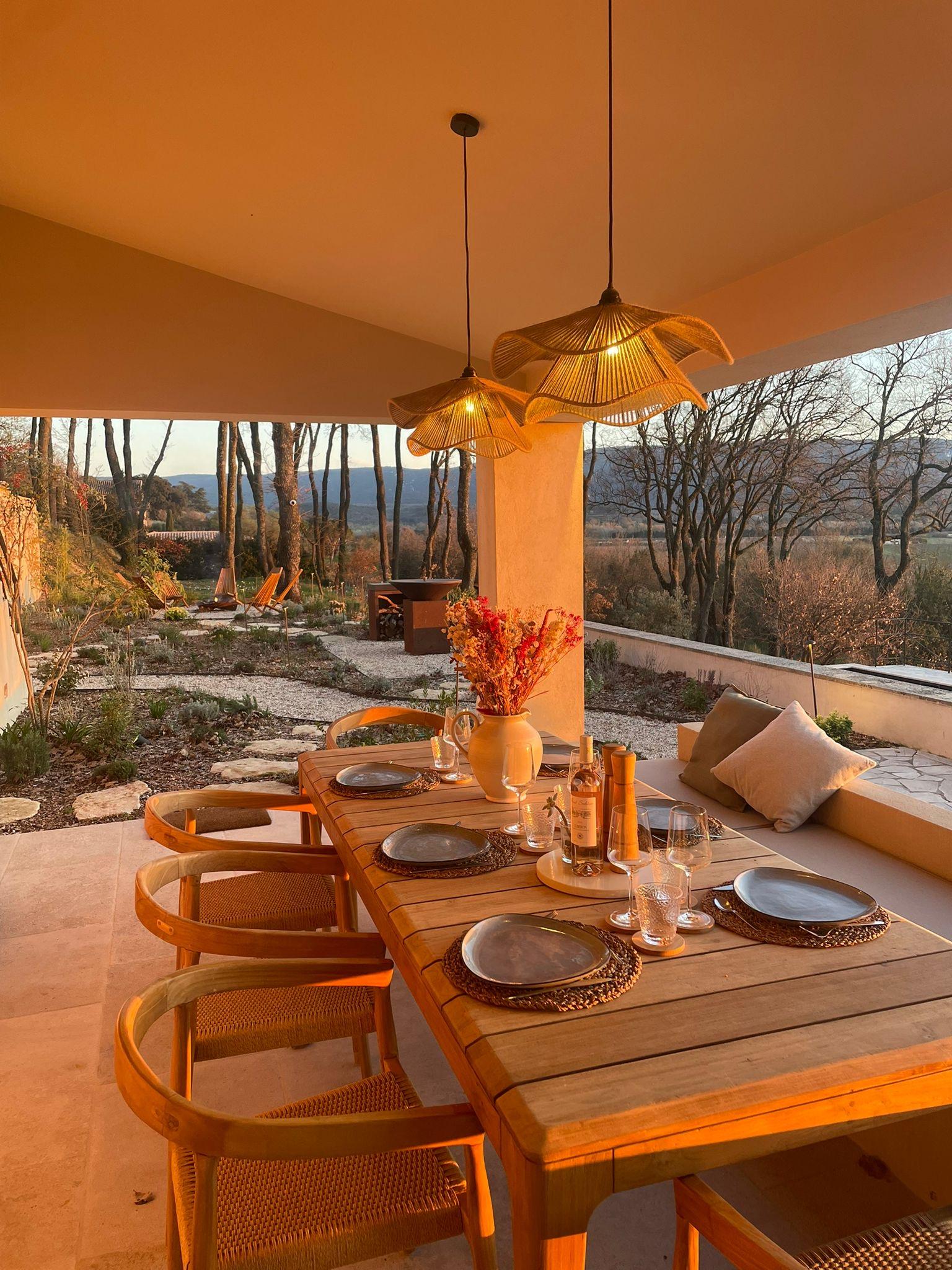 Nos coups de cœur : la vue panoramique à couper le souffle. L’impression d’être en pleine nature, au milieu des arbres, tout en étant à proximité des villages emblématiques du Luberon. La cuisine d’été toute équipée.